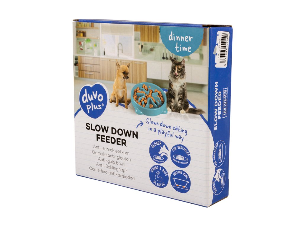 Miska na pomalé krmenie, tiež známa ako spomalovacia miska, je špeciálna miska navrhnutá tak, aby pomohla zvieratám jesť pomalším tempom. Tento typ misky má rôzne výstupky, prekážky alebo dráhy, ktoré zvieratám bránia v prehĺtaní jedla príliš rýchlo. Týmto spôsobom sa zlepšuje trávenie a znižuje riziko prehĺtnutia vzduchu, ktoré môže viesť k problémom so žalúdkom. Misky na pomalé krmenie sú vhodné pre zvieratá, ktoré majú tendenciu prehĺtať jedlo príliš rýchlo, čo môže viesť k obezite, nadúvaniu, alebo iným zdravotným problémom.