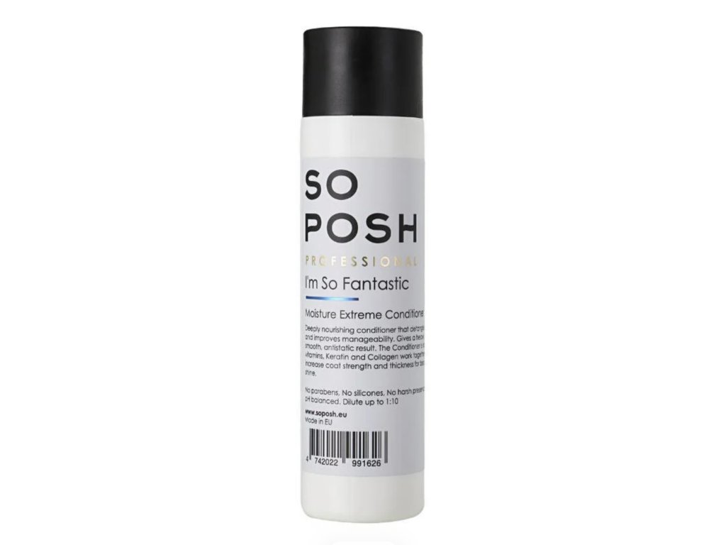 I'm So Fantastic kondicionér od So Posh je výživný kondicionér, ktorý pomáha pri rozpletaní zamotanej srsti a uľahčuje jej údržbu. Poskytuje intenzívny, hodvábny a antistatický výsledok. Tento kondicionér je bohatý na vitamíny a zabezpečuje pevné držanie srsti, čo ju robí hladkou, lesklú a dobre definovanú. Je šetrný k srsti a neobsahuje parabény ani silikóny, čo z neho robí bezpečný produkt pre domáce zvieratá.