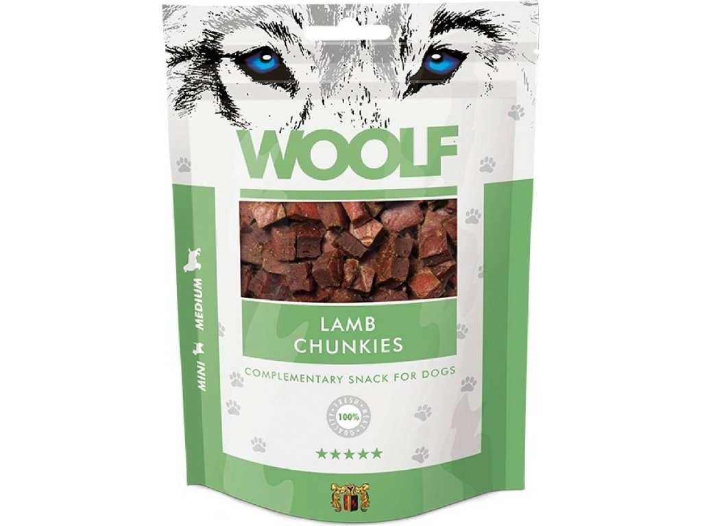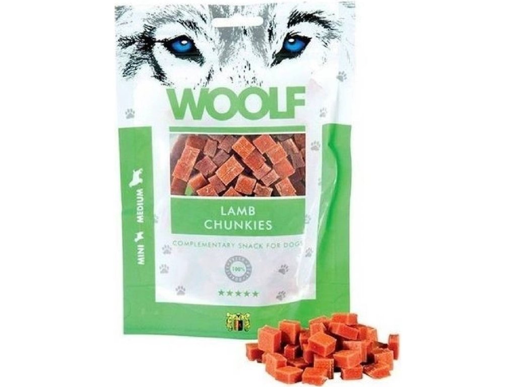 Mäsová maškrta v tvare malej kocky ktorá núti aj malé plemená na hryzenie. Maškrta je vhodná najmä pre malé plemená psov. Ideálne aj pre šteňatá a staršie psy. Pochúťky Woolfsnacks sú špeciálne navrhnuté pre psov všetkých plemien. Pri výrobe sú použité 100% bielkoviny tej najvyššej kvality pre čo najlepší príjem potravy. Všetky pochúťky Woolfsnacks sú ihneď po vyrobení sú zabalené bez chemických prísad, konzervačných látok, alebo farbív. Na zabezpečenie ochrany je do vrecka umiestnený absorbér kyslíka. Nekonzumovať okysličovadlo.